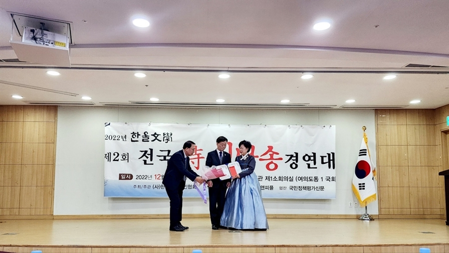 (사)한울문학이 주최한 제2회 전국시낭송대회에서 대상을 수상하였습니다.