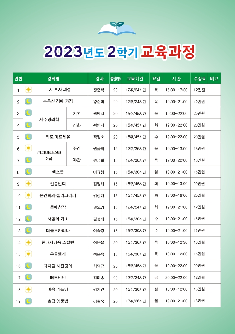 1. 수강신청 기간: 2023. 8. 7.(월) 09시 ~ 8. 18.(금) 18시