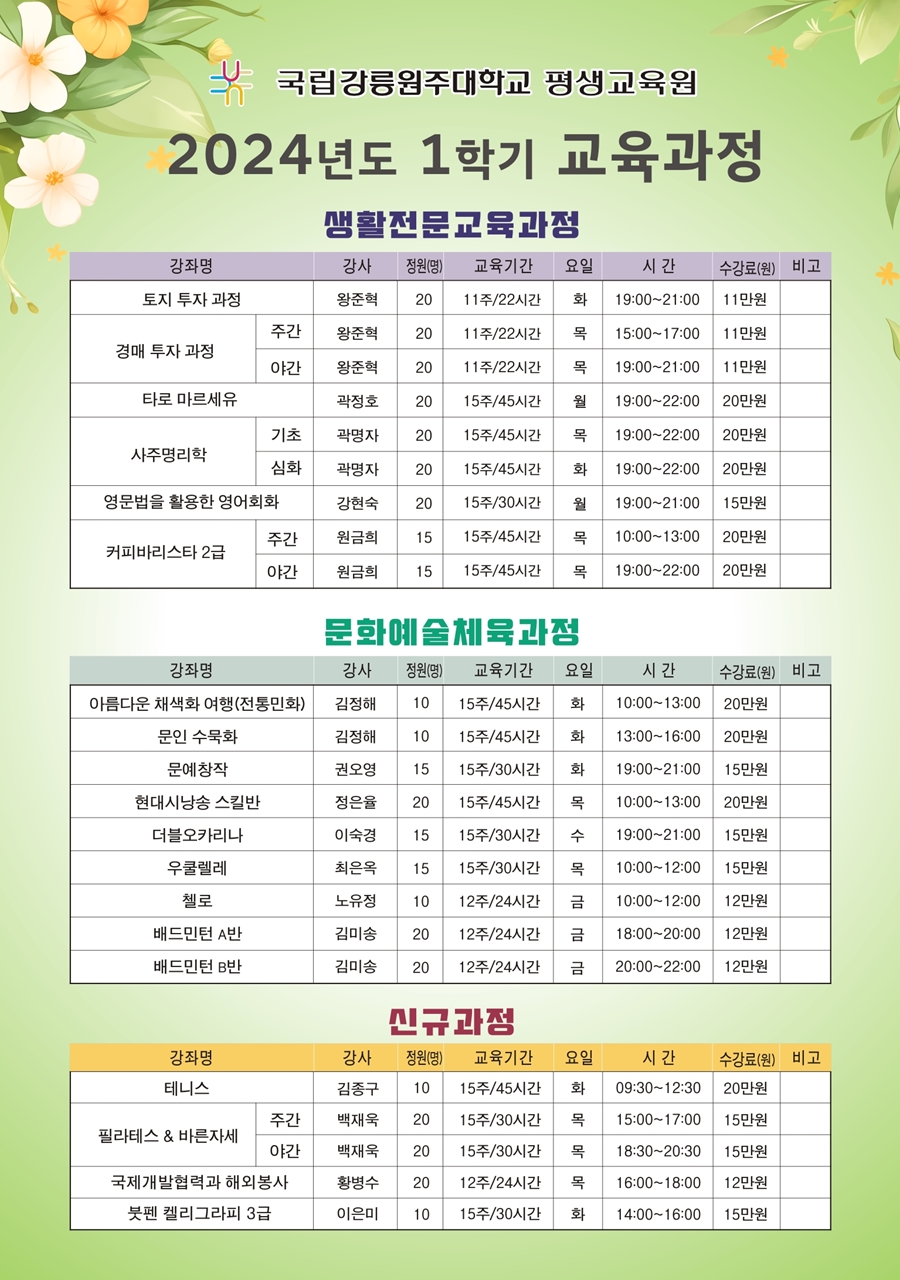 2024년도 1학기 수강생 모집