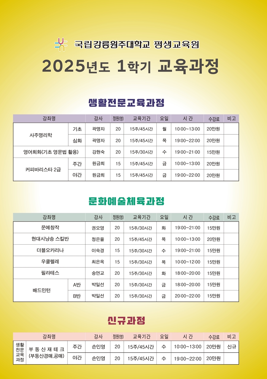 국립강릉원주대학교 평생교육원(원주캠퍼스)